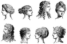 En la Atenas Clásica las mujeres llevaban peinados muy complicados con cintas, redecillas y trenzas, aunque las esclavas solían llevar el cabello corto. Para peinarse lo hacían con peines de madera de olivo, hueso, marfil, cobre. Usaban también tintes para el pelo y se depilaban con la llama de una lámpara y navajas. También utilizaban cremas de belleza para obtener una tez blanca o rosácea; igualmente se sombreaban ojos y cejas, pintándose los labios de rojo. Se miraban en espejos de metal muy pulido.